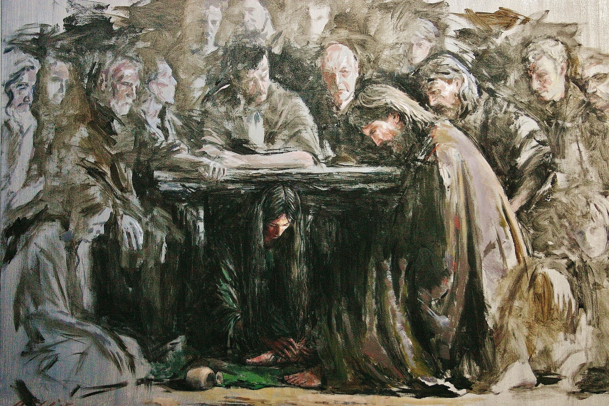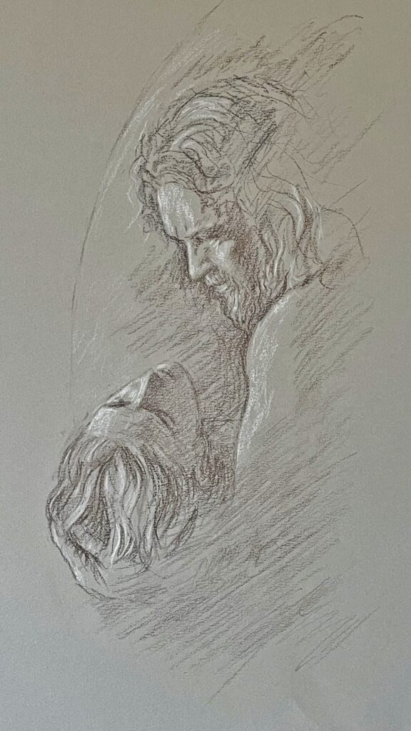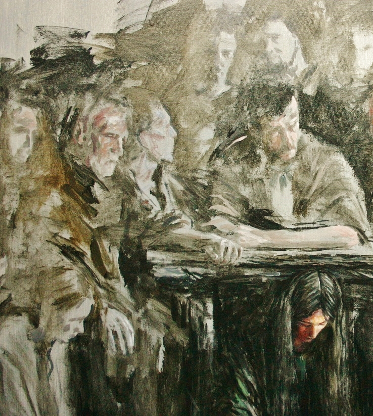 This study was made as part of the development for the 14ft canvas The Last Supper painted in 2011 – 2012. (see image detail below)