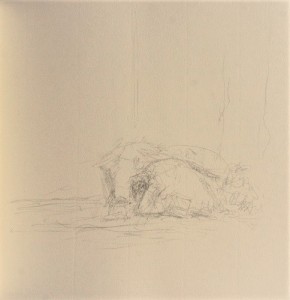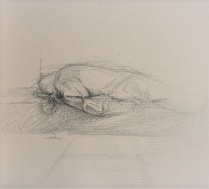 Spending time observing each person – often in the same pose sitting or sleeping – drawing their form without knowledge of their life story, their merits or failures, I encounter a sense of reverence, simply being in the presence of a creation of God, however small the life within the social echelons of modern prosperity. The kernel of life is raw, more real somehow without the element of ownership.