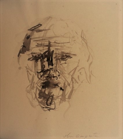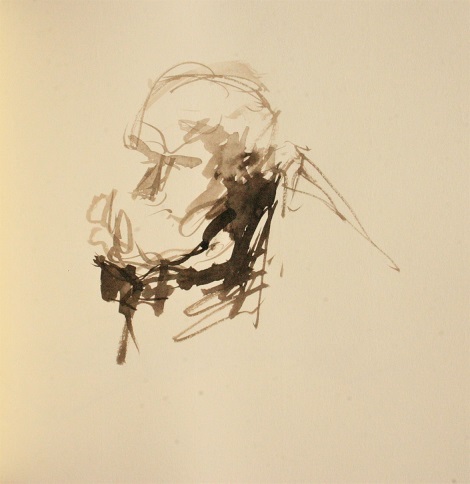 The amputee. Only glimpsed for a moment in the crowd, but his face became the source of inspiration for a number of paintings and sculptures. Brushed Ink on Paper