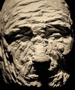 Carved head approx. 8 cm; one of my favourite methods of modelling. Plaster is so immediate it can be formed and rebuilt very quickly. Carved from memory in the studio by candle light . Plaster